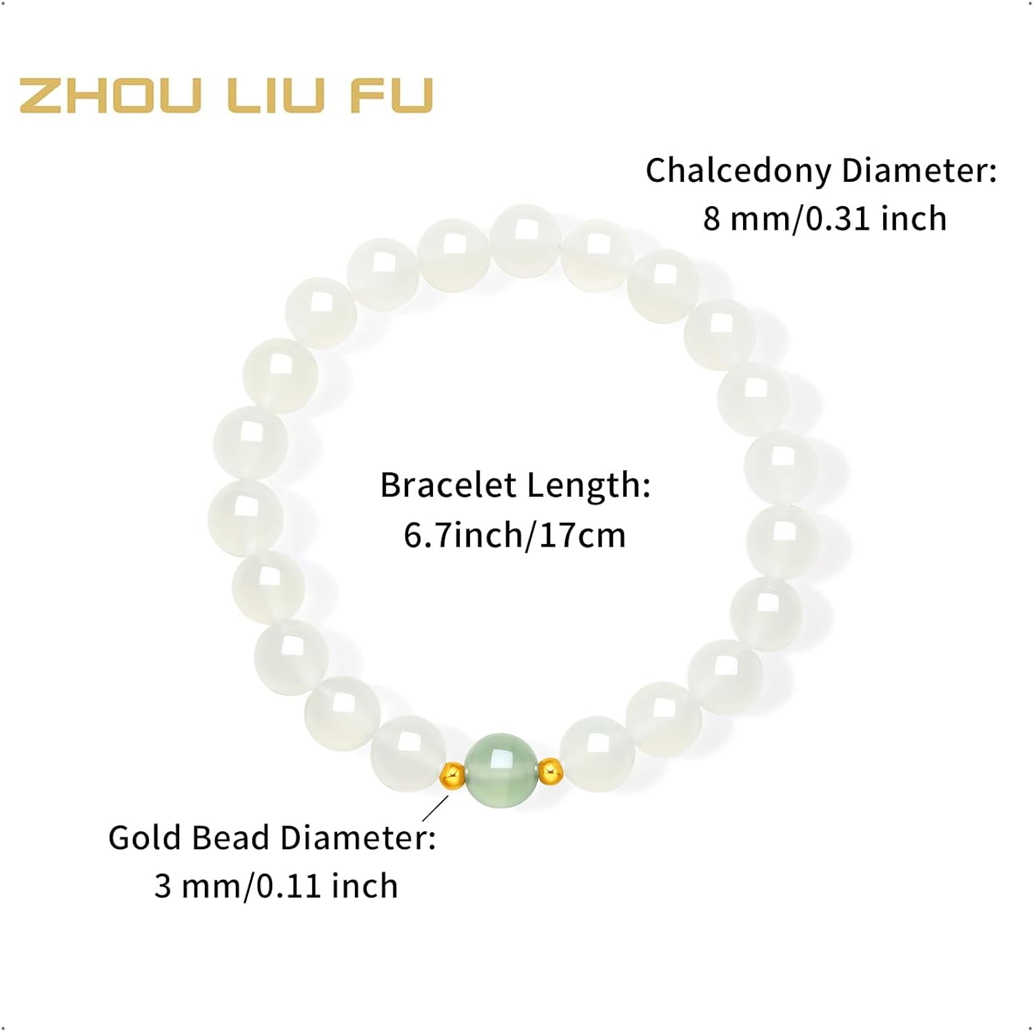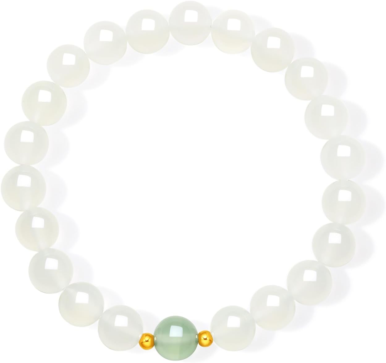 • Chalcedony Bracelets for Women: Each natural stone beaded bracelet features brilliant polish finish that enhances the chalcedony trendy bracelet's natural luster. The white beads in this 18k gold bracelet and the green charm are also 8-8.5mm in diameter. The chalcedony bracelet material is comfortable and suitable for daily wear