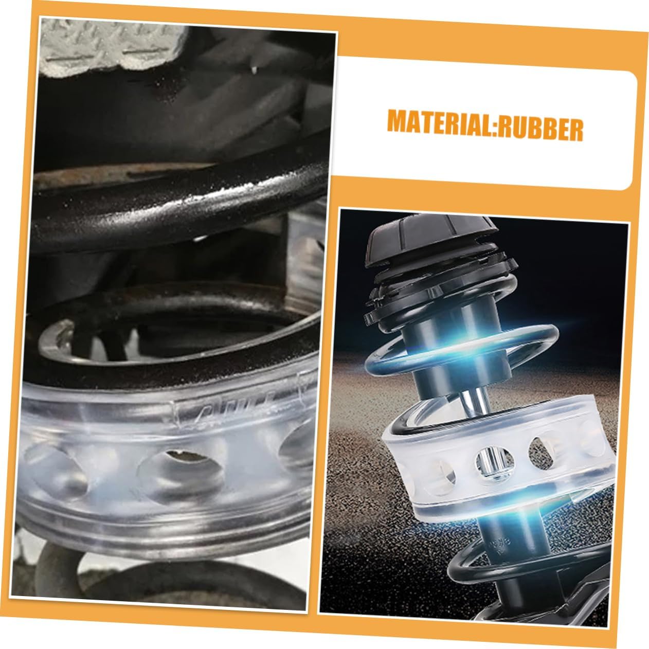 Package Include 4 x Spring Bumper Buffers Characteristics - Size: 13.70X13.70X5.30cm/5.38X5.38X2.08in Shock Bushings -Material:Rubber Car Shock Absorber - Color: Transparent Car Coil Spring Spacer -The design adds a touch to the appearance of the car without compromising overall look Spring Buffer. -The durable and stable construction long-term usage without any issues Coil Spring Spacers. -The installation process is simple and can be done without the need for professional skills or assistance Car Shock Bushings. -Efficient shock absorption technology ensures smoother and more comfortable ride experience . -The set provides ample supply for your complete car modification needs Car Coil Spring Booster.Goods InformationCar Bumper Cushion Experience enhanced driving comfort and minimize vehicle bumps and vibrations.Car Shock Absorber This spring buffer is specifically designed to the effectiveness of shock absorption, it offers durability and elasticity.Automotive Suspension Shock Absorber Installation is a breeze, and it is compatible with a wide range of car brands and models