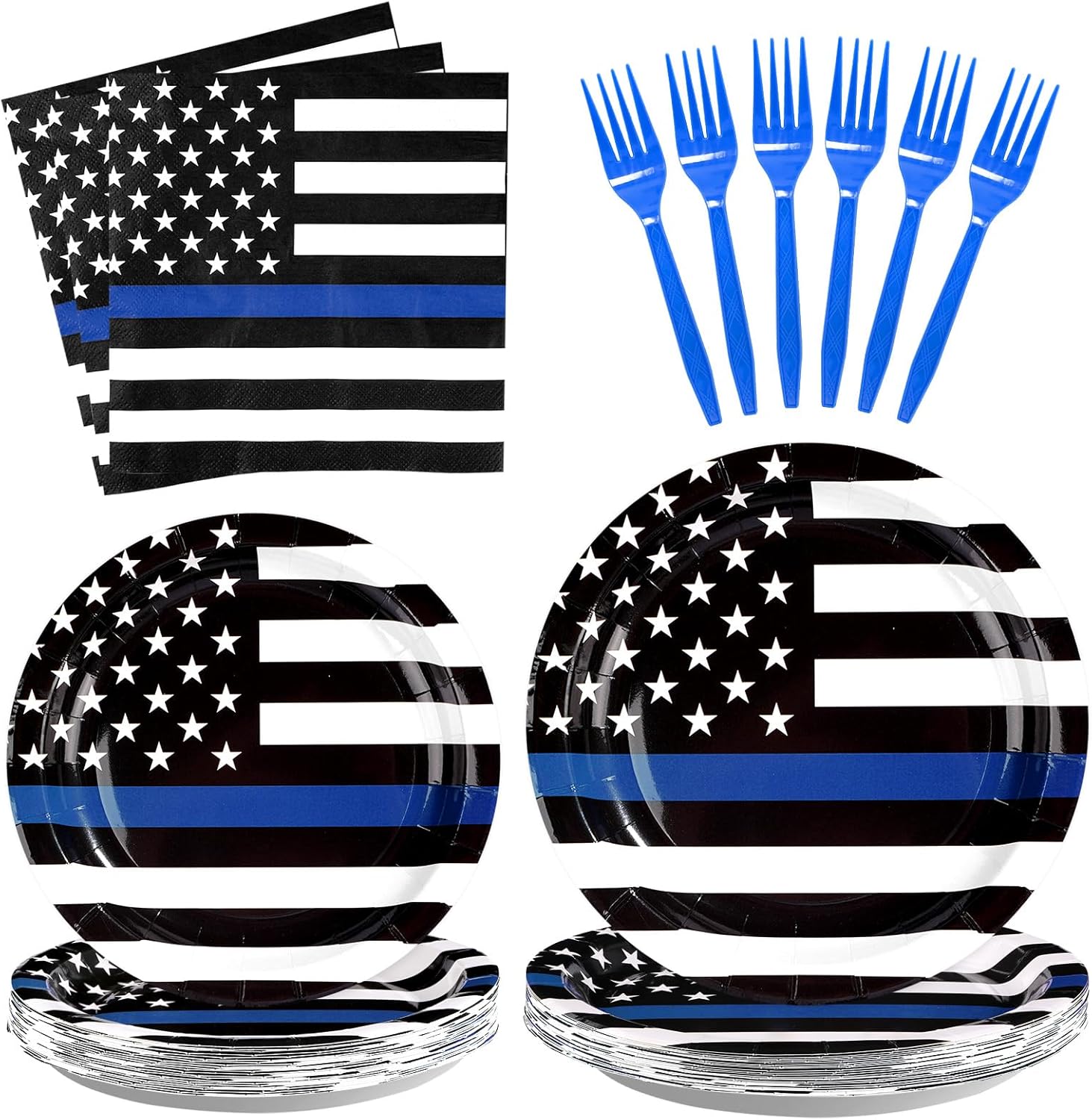 【Upgraded Material】Our police party plates is made of high quality thick paper, upgraded 350g weight is more sturdy and not easy to bend. The napkin is 3-ply, soft and absorbent, not easy to tear. The fork is made of high quality plastic, not easy to break. police pattern is beautifully printed and not easy to fade. High-quality materials ensure you enjoy the party smoothly and worry-free! (Tip: Please do not microwave the plates.)
