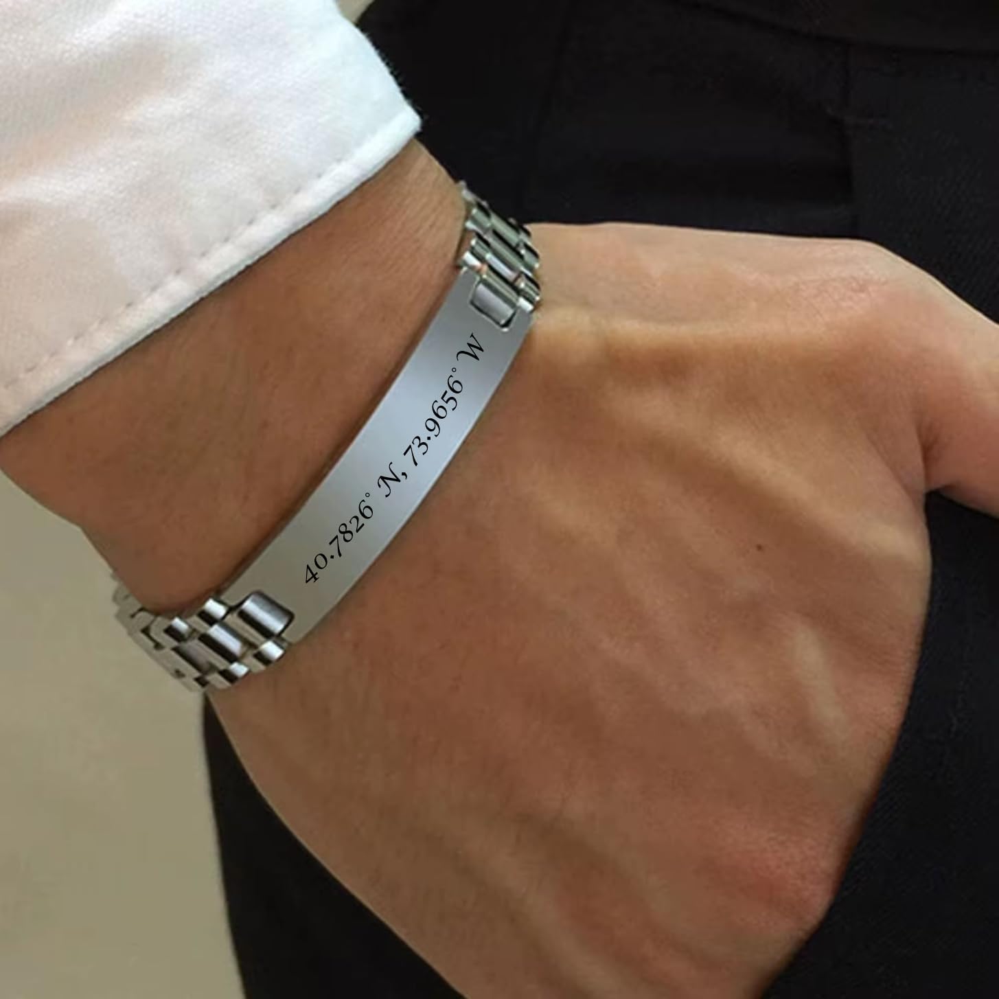 This engraved ID bracelet can be personalized with a name, date, or any custom information on both sides. Crafted from high-quality stainless steel, it is designed to resist rust, corrosion, and fading, ensuring long-lasting durability.
