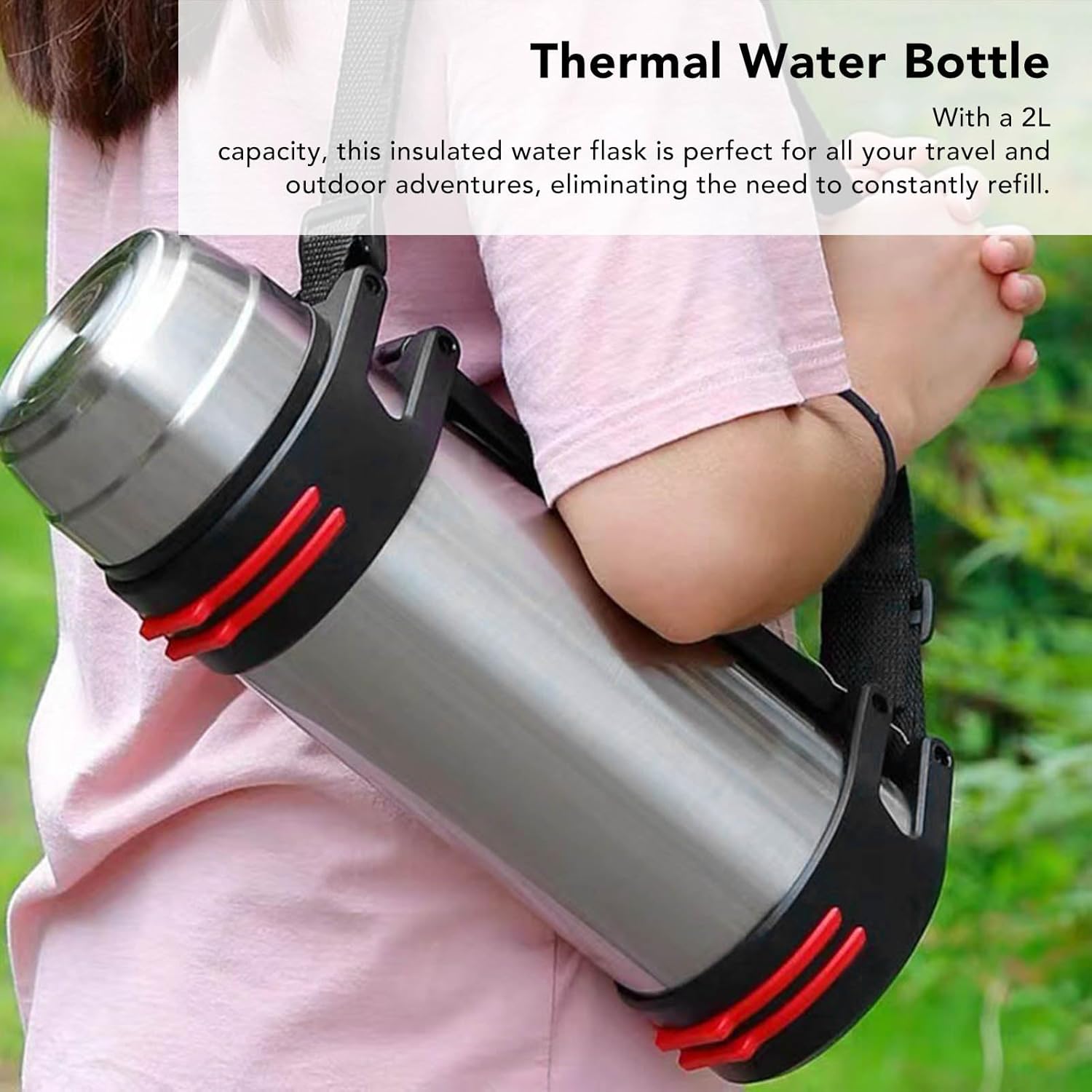 1. Large Capacity: With a 2L capacity, this insulated water flask is perfect for all your travel and outdoor adventures, eliminating the need to constantly refill. 2. Stainless Steel: Made of stainless steel, this water bottle is safe, durable, and maintains the freshness of your water for a long time. 3. Insulated Function: Keep your water temperature maintained with excellent insulation, allowing you to enjoy the perfect temperature even in hot summers or cold winters. 4. Leakage Proof Design: Equipped with a leakage proof lid, our water bottle ensures that you can carry it in your bag without any worries about spills. 5. Easy to Use: With a wide mouth design, it is convenient to fill and clean the bottle. It also features a handle for easy carrying during your outdoor activities. Specification: Item Type: Thermal water flask Material: Stainless steel Weight: Approx. 1147g / 40.5oz PackageList: 1 x Thermal Water Flask