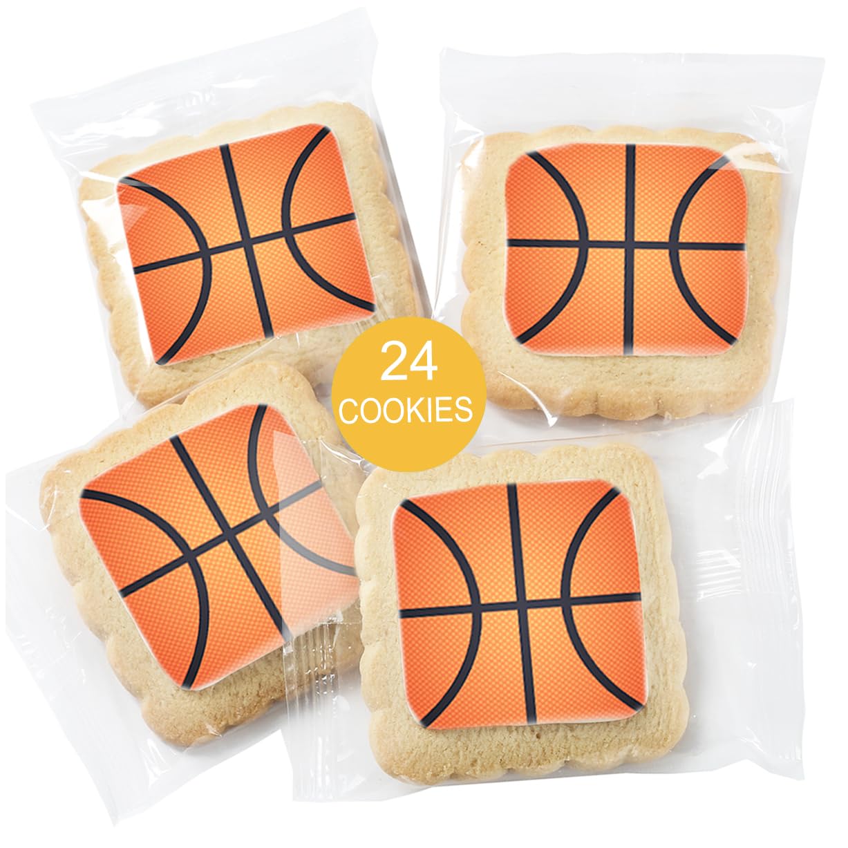 24 Delicious Sugar cookies made from scratch using the finest ingredients, including fresh eggs and real vanilla. Printed with edible ink. Cookies are carefully individually wrapped and packed with plenty of bubble wrap to ensure a safe delivery. Add a bounce of fun to your Baskeball themed party or delight the kids on the team with these fun cookies! Whether as party favors, on a sweet table, or in a treat bag, they're the perfect addition to your celebration. Our fun set of cookies also makes a cool and scrumptious Basketball gift that everyone is sure to love. With their fun design and irresistible flavors, our cookies are the ultimate treat for any sports lover. Kosher Dairy. Made in a Peanut Free and Tree Nut Free Facility. Made locally in the United States.