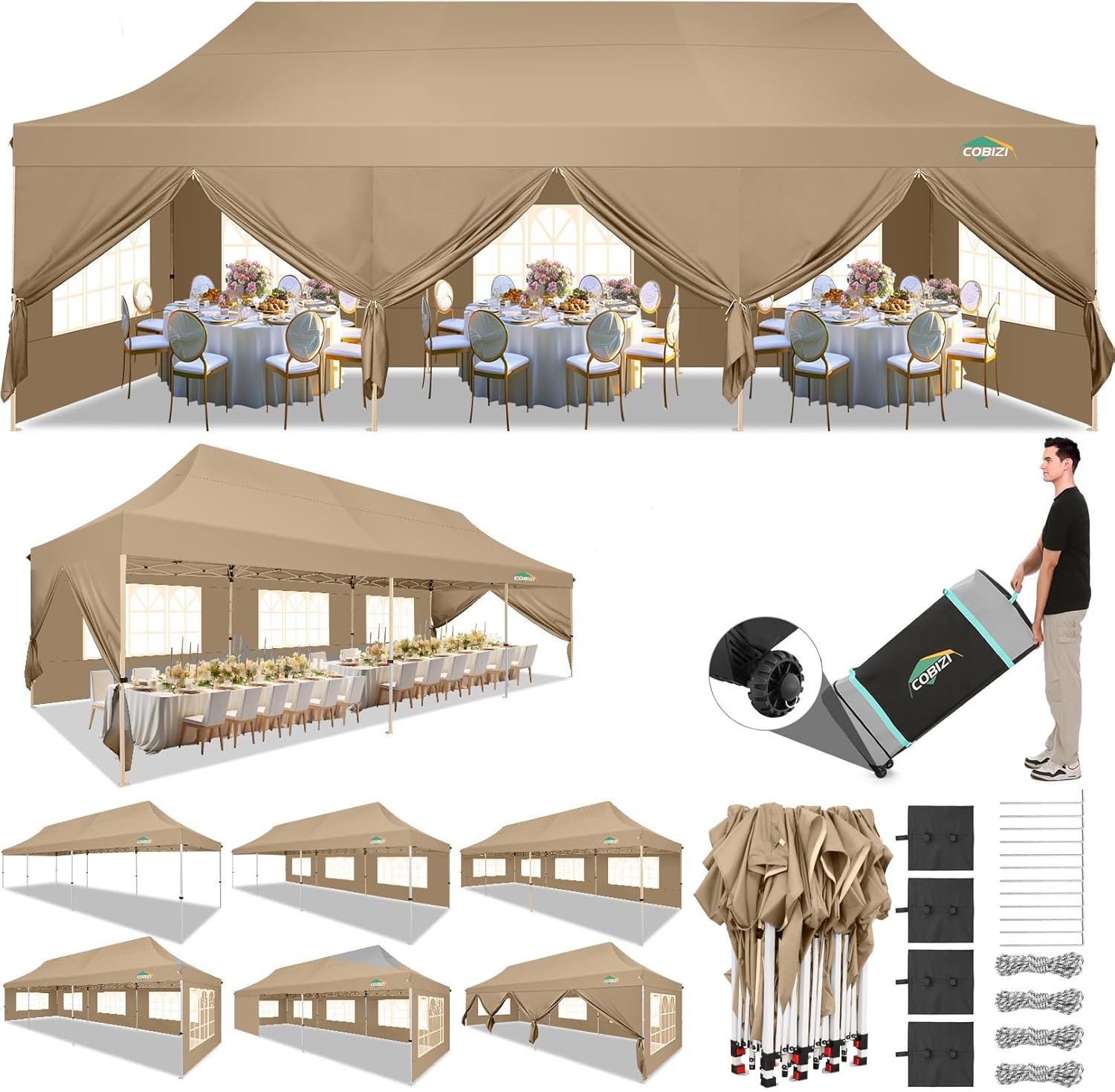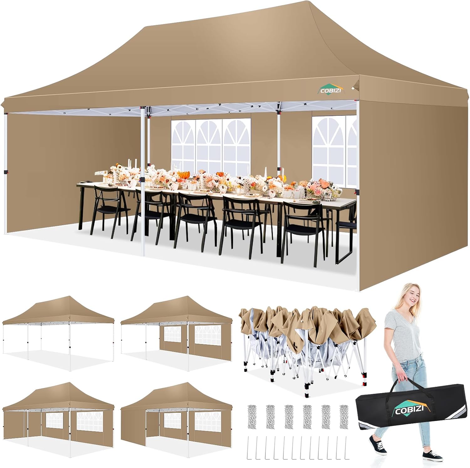 | Coverage | waterproof and UV-blocking canopy with removable sidewalls and windows |