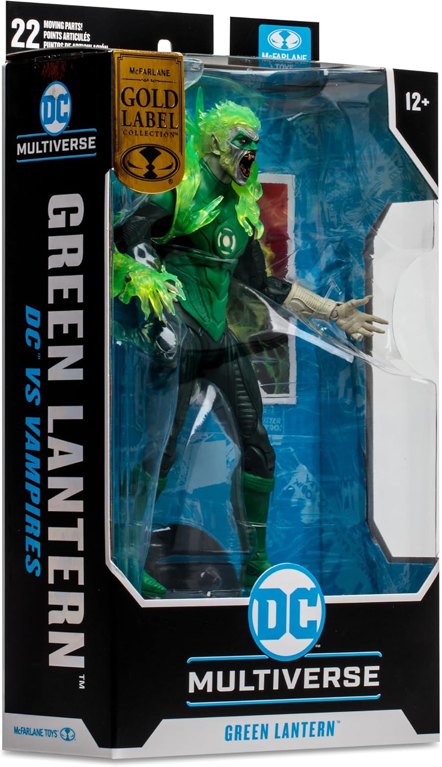 Name: Vampire Green Lantern Gold Label Category: DC Multiverse DC vs Vampires Series: Exclusive Type: Action Figure Size: 7 Inch Manufacturer: McFarlane Description: Incredibly detailed 7" scale figure based on the DC MULTIVERSE Designed with Ultra Articulation with up to 22 moving parts for full range of posing and play Green Lantern Vampire includes green flames Included collectible art card with character art on the front, and character biography on the back . Safety Warning: This product may contain sharp points, small parts that are choking hazards, and other elements that are not suitable for children under 3 years of age. We receive both US and Canadian Cases. You will get either English, bilingual or trilingual carded figures based on availability. Please understand this before ordering.