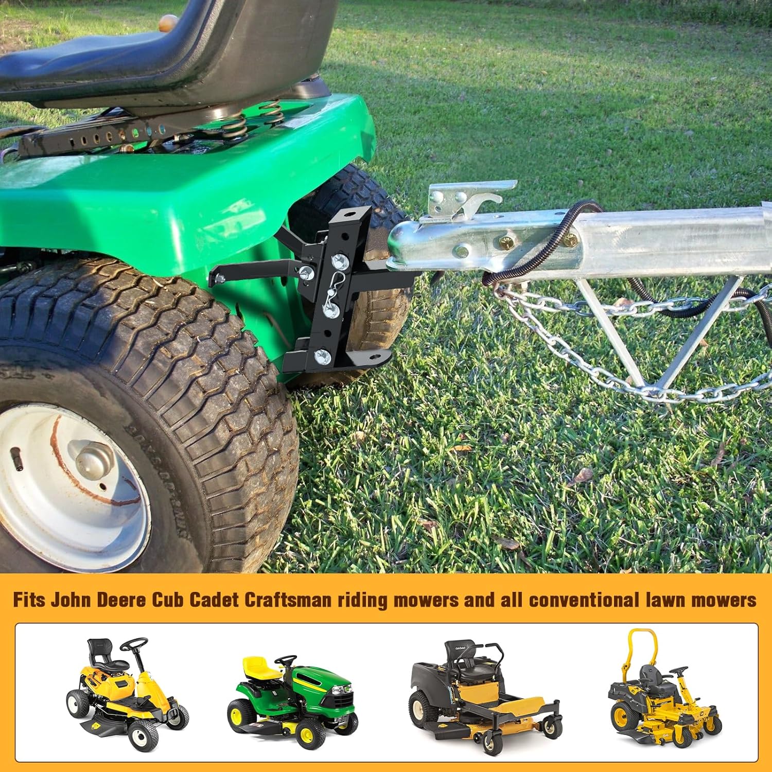 Eapele Adjustable Trailer Hitch for Lawn Mower, Garden Tractor Trailer Hitch, Compatible with John Deere Ariens Cub Cadet Poulan Pro Husky Husqvarna Craftsman Riding Mower