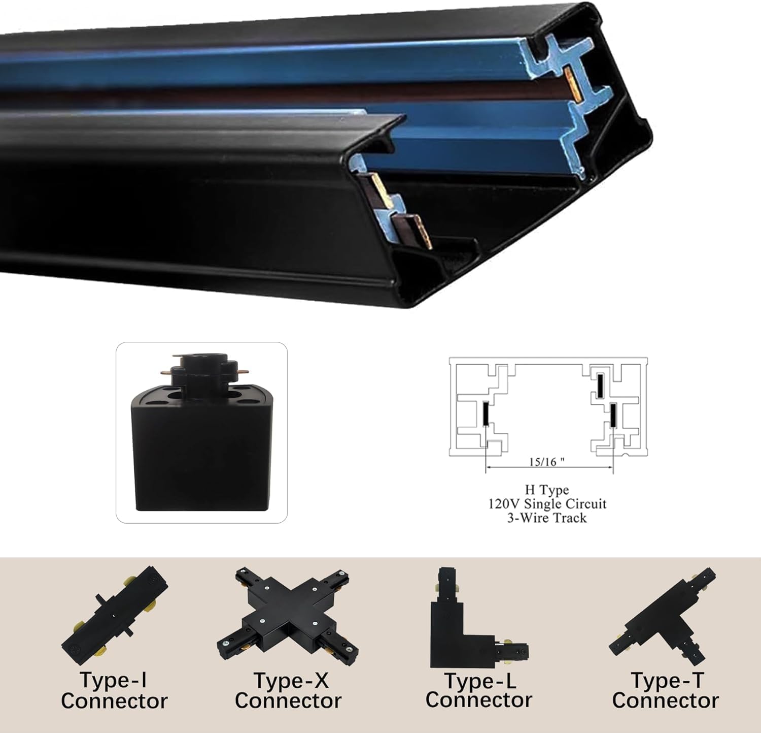 H Type Track Lighting Rails 8PCS 120V Single Circuit 3-Wire H Track Rail White 26 feet (3.28 * 8 Feet) with Wall Anchors and Screws Made of Aluminum and Strength Guarantee (Black 3.28FT*8)