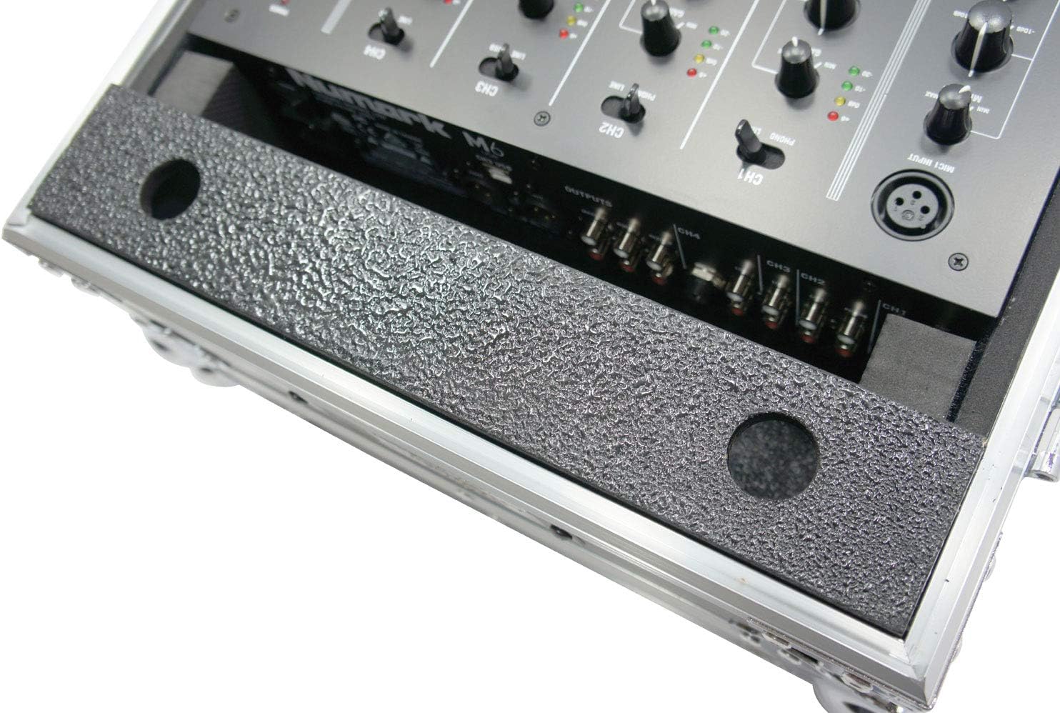 • SECURED BUTTERFLY LATCHES AND RECESSED HANDLE: Equipped with secure butterfly latches, the case closes firmly to create a tight seal, safeguarding your mixer during transit. A recessed handle enhances portability, making it easy for DJs to carry the case between venues or load in and out of performance spaces. The combination of butterfly latches and a recessed handle ensures both security and convenience, allowing for ease of use on the move.