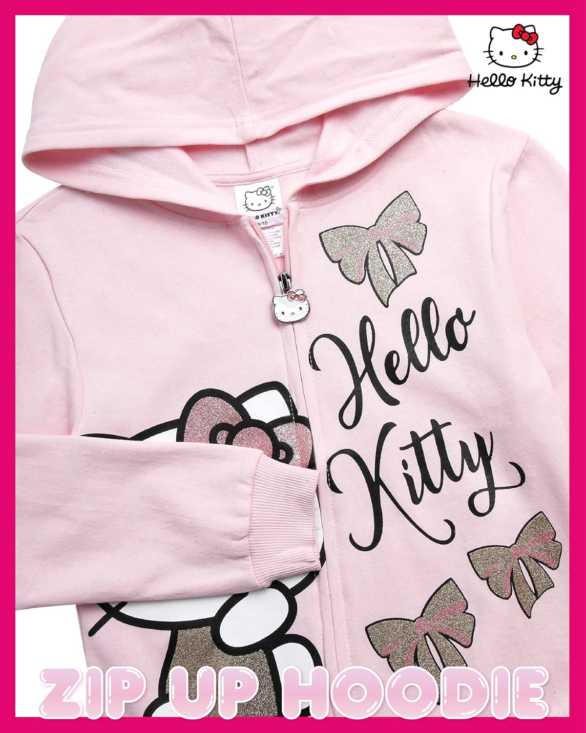The Hello Kitty girls hoodie is designed to be a staple piece in every girl’s wardrobe, blending fun style with everyday practicality. Crafted from 100% polyester fleece, this hoodie offers warmth without being heavy, making it easy to wear all year round. Families searching for girls' fashion hoodies & sweatshirts will find this piece durable, reliable, and stylish. The adorable Hello Kitty design adds a playful touch that kids love, while parents appreciate the lasting quality and versatile fit. With a convenient full-length zipper, this girls zip up hoodie allows quick dressing and layering, while the hood adds coverage for cooler mornings or outdoor activities. This hoodie is made to meet the most-searched categories, including hoodies for girls, girls hoodie, girl hoodies, girls sweatshirt, kids sweatshirts, and sweatshirts for girls, making it one of the most versatile layering pieces available. It functions as a girls lightweight hoodie during transitional weather, and it fits smoothly under coats during colder months. Parents shopping for back to school clothes for girls, girls back to school clothes, or kids fall clothes will find it an essential for everyday outfits. Its simple yet fun design ensures it pairs easily with uniforms, jeans, leggings, or joggers, making it a wardrobe basic that’s worn on repeat. This Hello Kitty hoodie is more than just a sweatshirt it fits into multiple product categories parents shop, from girls hoodie and jacket for girls to kids hoodie. It also meets the needs of families searching for girl sweatshirt, hoodie, sweatshirt, and zip up hoodie, making it a versatile option across age ranges. Parents looking for girls clothing, girls fleece hoodie , and clothes for girls will find this hoodie to be an everyday essential. Designed with durability, functionality, and the timeless appeal of Hello Kitty, this hoodie belongs in every girl’s collection of girls’ fashion hoodies & sweatshirts.