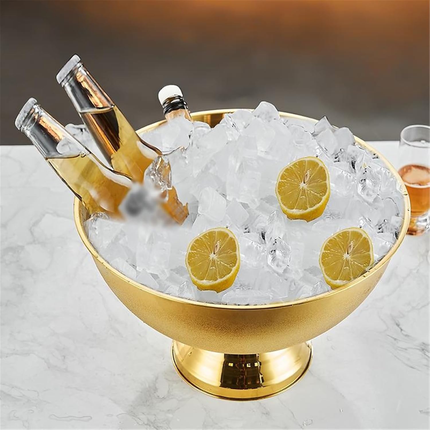 Product Name: Ice BucketMaterial: Stainless SteelSize: as shown in the picturePacking list: 1*ice bucketWhen idle, it can store ice cubes, snacks, and fruits for multiple purposes without wasting space.