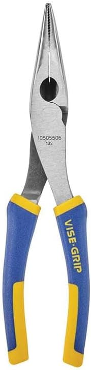 Product Description Vise-Grip 10505506 8" Cut Curved Half Reed Nose Pliers Vise-Grip 10505506 8" Cut Curved Half Reed Spout is ideal for precise cuts, buy yours now! Characteristics Brand: Vise-Grip Reference: 10505506 Technical Specifications Nozzle: Curved Compact Plier: 8" 200 mm Color: Blue with yellow details Ideal application to perform precision cuts Items Included 01 Vise-Grip pliers 10505506 curved half-cane nozzle with cut 8" Dimensions (L x H x W): 5.9 x 0.8 x 5 cm Weight: 0.28kg Warranty 12 months Set Contains: 1 x Bent Snipe Nose Plier