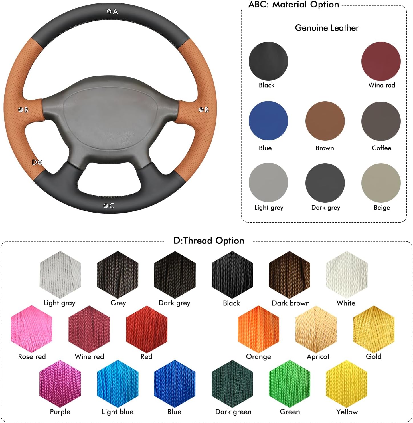 【Note】Need to go hand sewn, Take Your Time, The Results Will Surprise You. Suitable Car model : Fit for Mitsubishi L200 1995-2005 / Triton 1997-2005(just for reference). If you are not sure whether the cover fits or not, please send us a picture of your steering wheel to check the fitness for you.