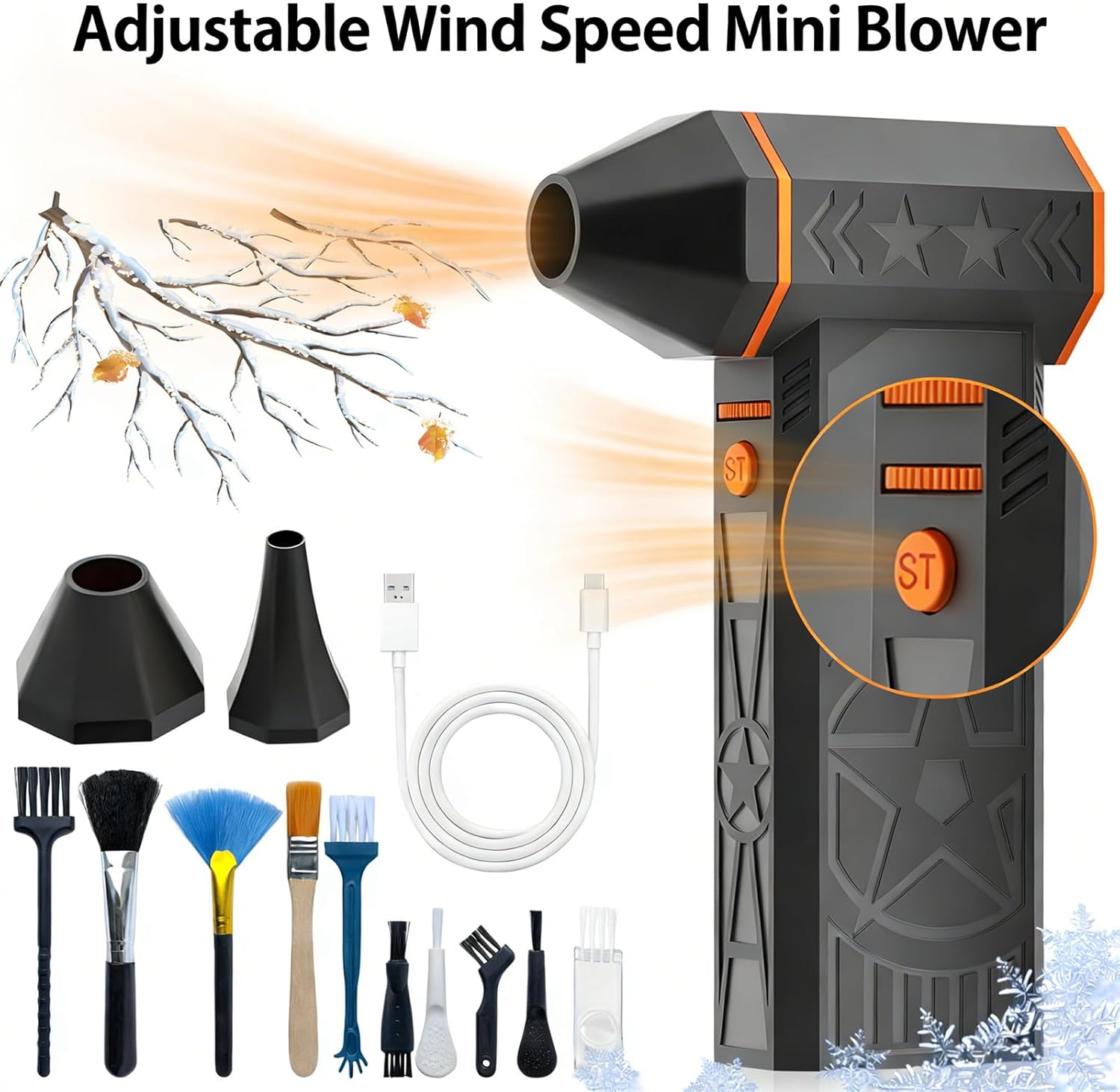 Specification: Product: Blower De Nieve Rated Voltage: 5.0V Power Supply: Type-C Battery Capacity: 3000mAh Product Weight: 250g Charging Time: About 2 hours Shell Material: Plastic/ABS Product Size: 13.2*8.2*3.7cm Gear Settings: 4 adjustable gears Battery Life: About 30 minutes at low speed Product Speed: Gear 1: 40,000 RPM Gear 2: 60,000 RPM Gear 3: 80,000 RPM Gear 4: 130,000 RPM Product includes: 1 pcs Blower De Nieve* 1 pcs * Gloves Note: 1. Due to not the same monitors and lighting effects, the actual color of the item maybe slightly not the same from the color shown on the picture. Please understand. 2. Due to manual measurement, there is a certain error in the product size.
