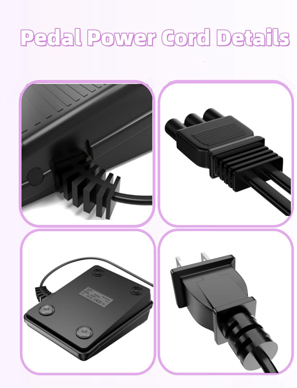 Pedal Power Cord for Janome & Kenmore Sewing Machine, Compatible with Janome 033770217 YC-482J-1 HD3000 HD1000 2212 11706 3125 204d 3434d 3128 415 8002d 7933 and more