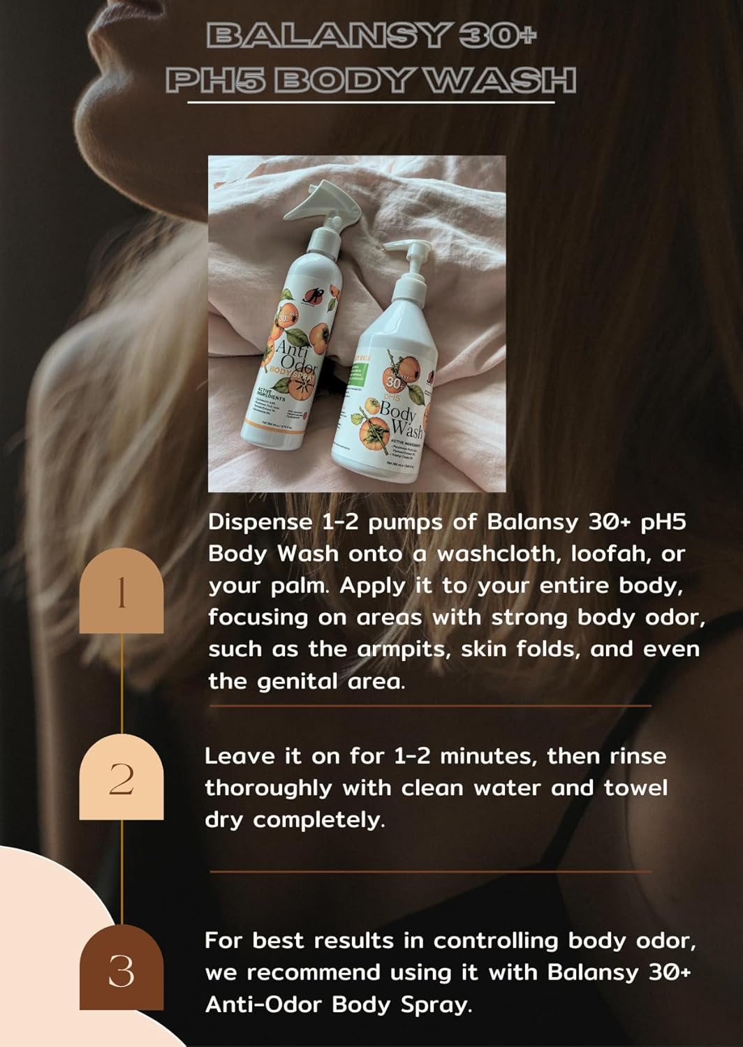 "Old Person Smell": It Can Happen Even If You're Not Old Discover the power of Japanese persimmon extract with this innovative pH5 body wash. This 9.64 fl oz formula is specifically designed to tackle stubborn body odors that can occur in hidden spots like behind ears, neck, armpits, and other areas. The unique formulation includes persimmon fruit juice ferment extract and triethyl citrate to effectively eliminate unpleasant scents, including greasy and sour body odors. The body wash works for people of all ages and genders, addressing the natural compound 2-nonenal that develops when skin oils oxidize. Unlike regular soaps, this specialized wash is formulated to combat even the most persistent odors. The pH-balanced formula helps maintain skin's natural balance while cleansing. Perfect for daily use, this body wash offers a comprehensive solution for those seeking effective odor control in their personal care routine.