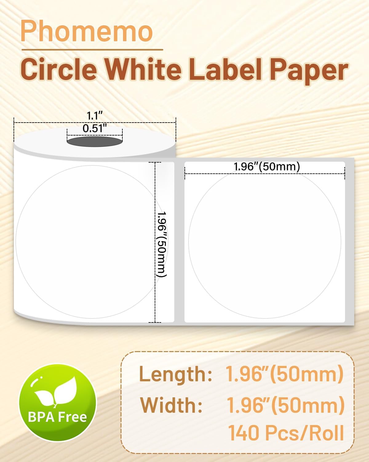 Phomemo M220 Label Maker & 1 Roll White Thermal Labels, 1.96" x 1.96"(50x50mm)