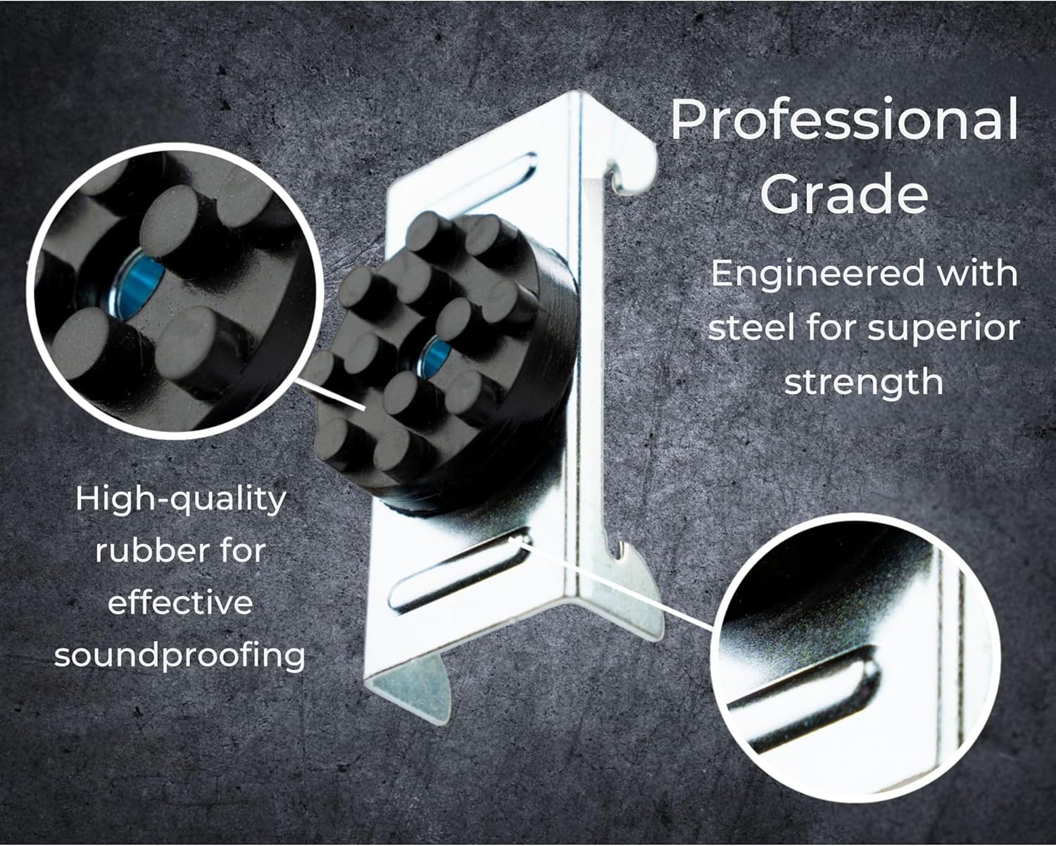 Reduce the noise levels in your home or office with these premium Sound Isolation Clips. Designed to break the physical connection between two surfaces, sound isolation clips are an imperative component of any acoustic project. Great for both DIY and professional soundproofing applications, these pieces have been precision engineered for maximum performance.Our sound isolation clips provide excellent acoustic insulation as they reduce reverberation and interference. Perfect for anyone working from home or in a noisy environment, our product gives reliable noise reduction for a much quieter home or office space. Installed correctly, these clips can ensure that all noise is kept within the same room it is generated, making them invaluable additions to any residential or professional acoustic development projects. Whether you are looking to make your home a sanctuary of tranquillity, renovate an office building into a comfortable workplace, or prevent noise transfer between apartment units, our durable Sound Isolation Clips will help you achieve results quickly and efficiently at an affordable price.Order now to take advantage of the best value available on Amazon today!CLIP SPECIFICATIONS: Length: 3.00” Width: 1.437” Height: .688” Design Load: 36 lb. per clipINSTALLATION SPACING: Vertical: 24” OC Horizontal: 48” OC Support up to two layers of 5/8" drywall when spaced less than or equal to 24" x 48" on center.FURRING CHANNEL SPECIFICATIONS: Gauge: 25 Height: .875” Width: 2.5” Edging: Hemmed Length: Typically 12’ Splicing: 6” Min. Overlap, Secure laps with 2 Steel framing screws or wire. Furring channels should meet or exceed SSMA requirements.