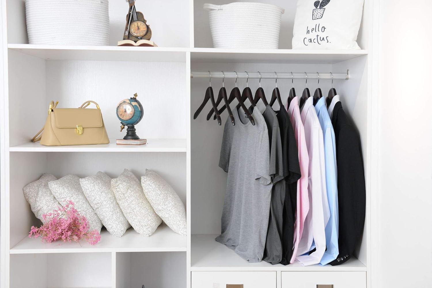 Why Choose Our Wooden Clothes Hanger Set? Here Are The Top 3 Reasons! ✅ UPGRADED CONTOURED SHOULDER DESIGN: Unlike standard coat or jacket hangers that cause your clothes to slip or wrinkle, these suit hangers for men with the slightly curved design imitate the human shoulder curvature and prevent creasing for your coats and shirts. ✅ CONVENIENT 360-DEGREE SWIVEL HOOKS: Instead of fumbling in your wardrobe to find the top or pants you need, you can now browse your clothes with ease. The sturdy rotating hooks help you find your clothes faster without removing them from the hanger. ✅ SLEEK DESIGN IN 5 COOL COLORS: These luxurious wood clothes hangers with the amazing gloss finish are available in 5 different colors. Order yours today and one more set as a thoughtful gift! Need More Reasons? ✔ Offered in 10-Pack, 20-Pack, and 80-Pack Sets ✔ Heavy-Duty Lotus Wood – Durable Rust-Free stylish Hooks ✔ Great For Bedroom, Nursery, Guest Room, Hotel What You Get: 1 * Set of Wooden Hangers 10-Pack, 20-Pack, or 80 Pack Get Your Premium Hangers Today!
