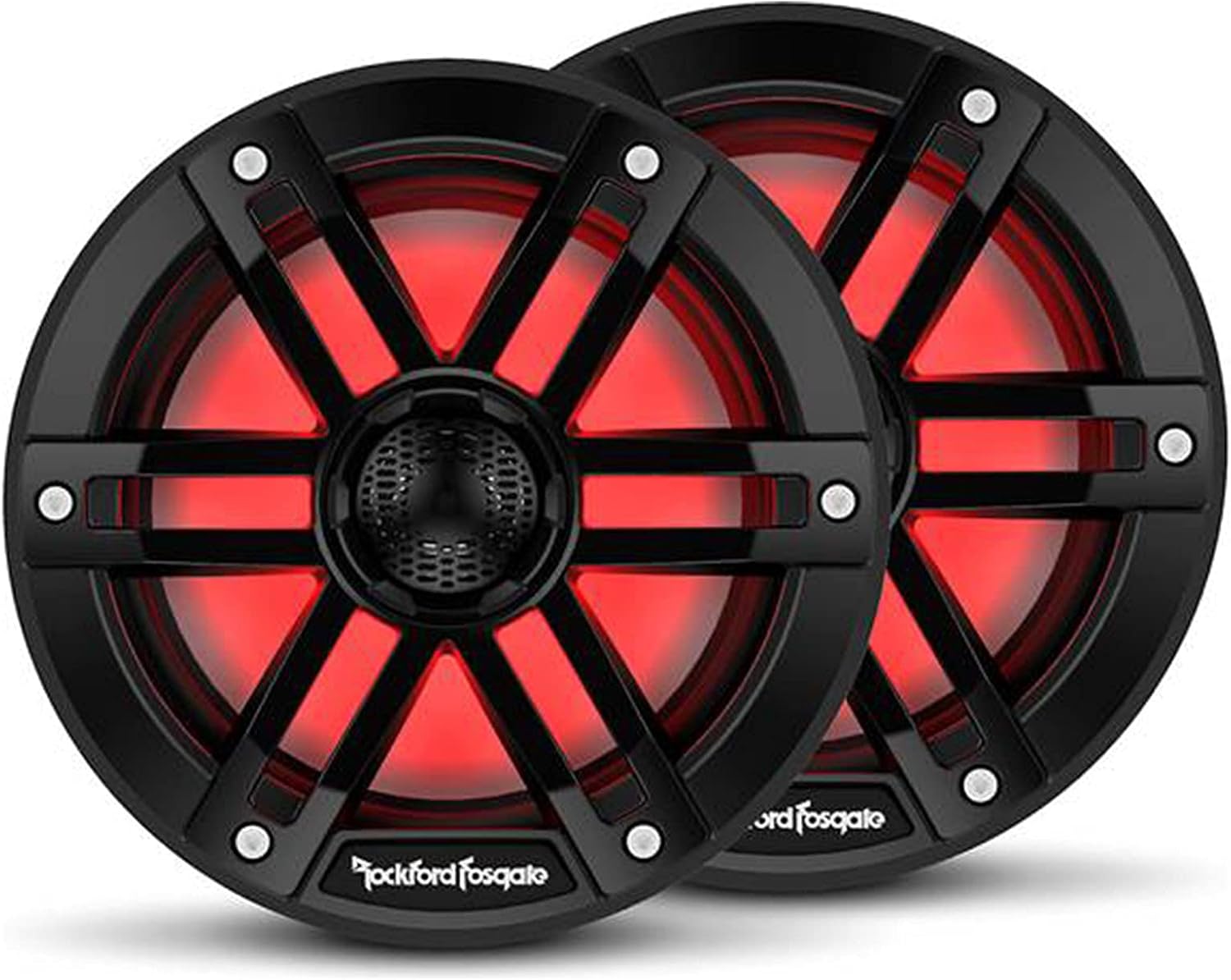 Enhance your marine audio system with the ultimate bundle! This comprehensive set includes a Rockford Fosgate PMX-RGB Color Optix Light Controller, 4x 25 Ft Color Optix Extension Cables, a PM500X2 2 Channel Marine Amplifier, and 2x M1-8B 8” Color Optix Marine 2-Way Systems. The PMX-RGB controller offers full LED lighting control for up to 8 speakers/subwoofers through the RF Connect app, creating a visually stunning marine audio experience. The RGB-25 extension cables facilitate easy installation and expansion. The PM500X2 amplifier delivers 500 Watts bridged power, featuring C.L.E.A.N. Set-up and Punch EQ for optimal customization. The M1-8B speakers boast UV stable RGB lighting, high-quality construction, and 150 Watts RMS output. With IP67 certification and Element Ready design, they are ideal for marine use. Elevate your sound quality and aesthetics on the water with this exceptional bundle!