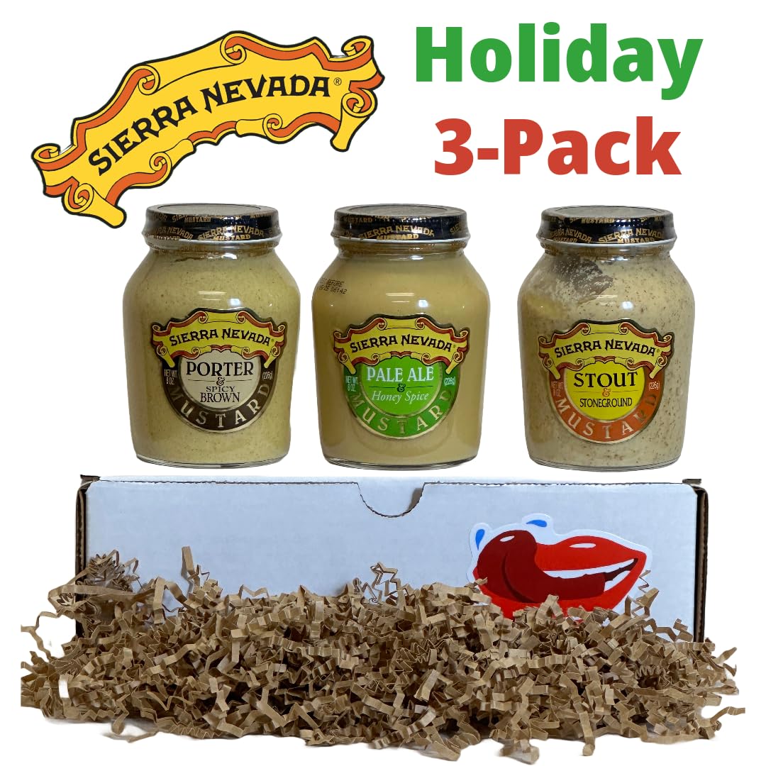 Looking for a unique and delicious gift to surprise your loved ones or impress your guests? Look no further than our Sierra Nevada Mustard Gift Set! Made using the finest Sierra Nevada beer, our gift set features three tantalizing mustard flavors: Pale Ale and Honey Spice Mustard, Stout and Stone Ground Mustard, and Porter and Spicy Brown Mustard, that are sure to please any foodie or beer lover. Packed in a convenient easy-to-wrap gift box to protect the jars and with each jar featuring a glass container, this gift set is the perfect choice for any special occasion. Made in the USA!