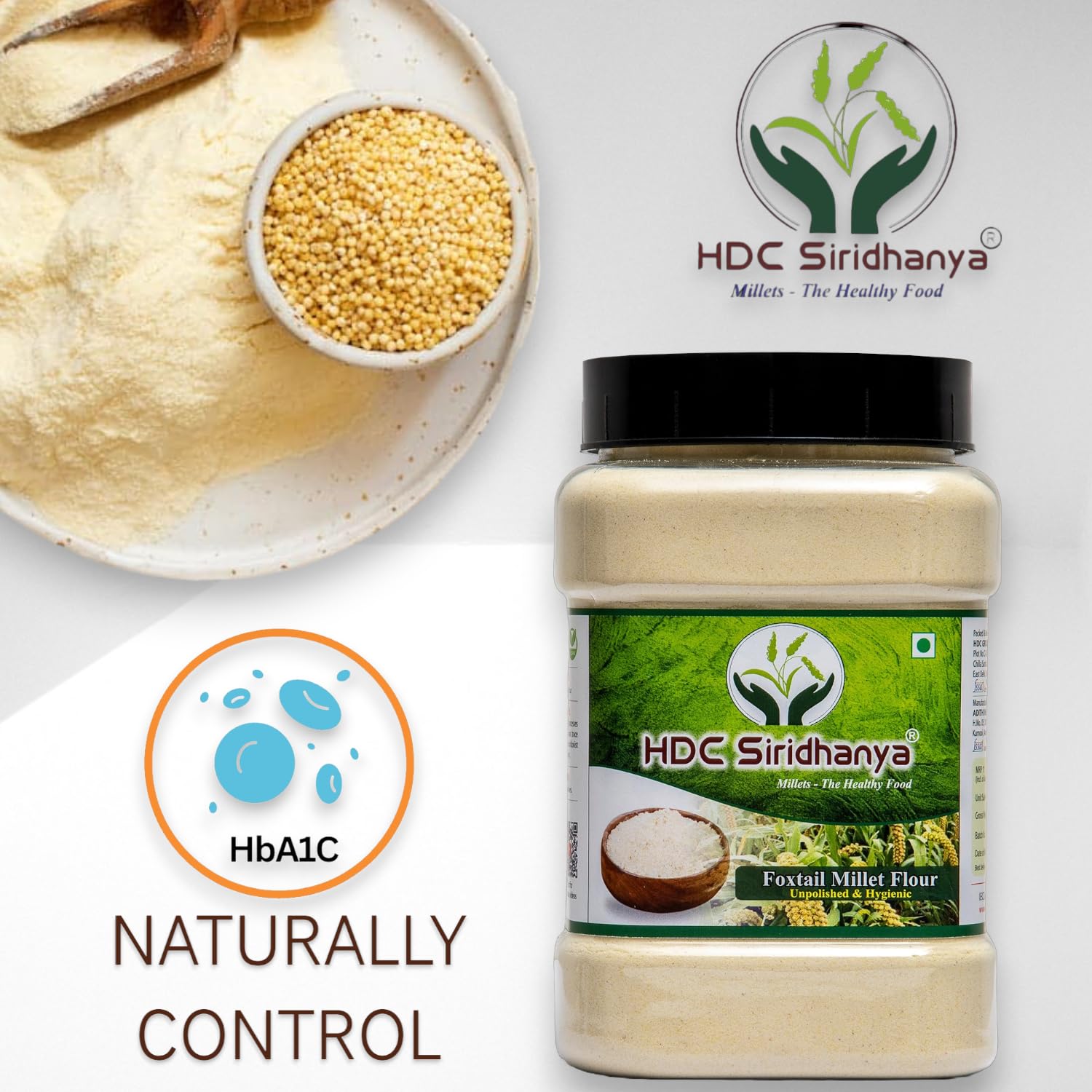 Siridhanya (Unpolished & Organic) Natural Millets Combo Pack of 10 | Each Millets 900Grmx5 pack and 900gm flour 5 Packet , Foxtail , Kodo, Barnnyard, Little, Browntop, Nutrient , High Protein & 100% more Fibre than Wheat grain HDC Group India operates as a leading online and offline platform for healthy, natural, unpolished, and organic food products. Based in India, the company offers a wide range of high-quality, natural organic food items to its customers. Its product selection includes positive millet grains, positive millet grain flour, multi-grain flour, black rice, honey-dipped dry fruits, and more. The company is dedicated to promoting healthy living and sustainable agriculture by sourcing products from farmers who employ traditional and sustainable farming methods.