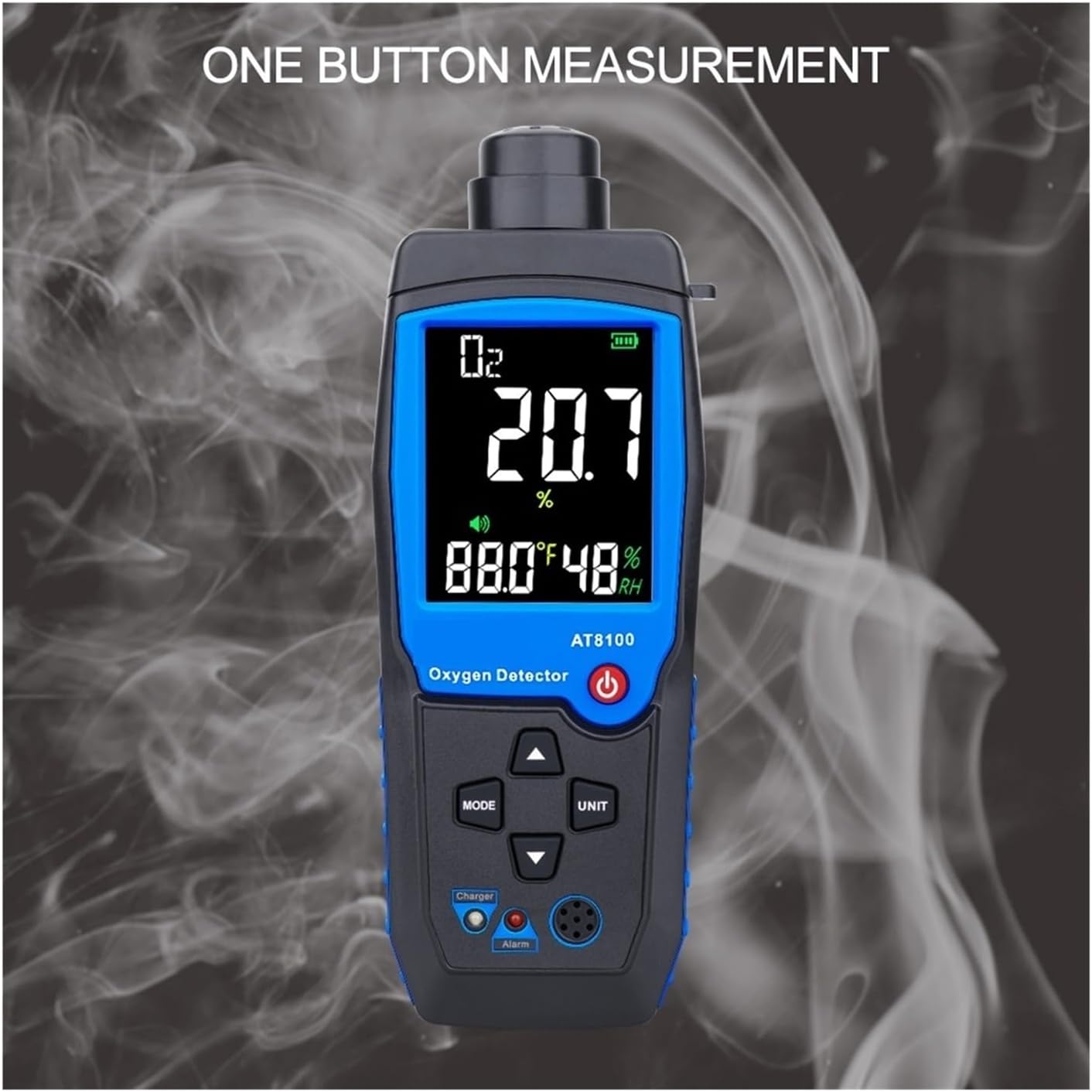 Colorblack+bluegas typeoxygen meterMeasuring range0~25% volumesolve0.1%Basic error:Less than ±0.1%Response time:less than 50 secondsRecovery Time:less than 50 secondsMeasuring principleElectrochemical principle, lifespan 2 yearsLow/High Alarm/Alarm alarmSound and light double alarm, alarm value can be set, alarmThe sound is divided into 80 decibelsOperating temperature:-10~50(except LEL 0~40)Working humidity:15~95% relative humidity, typicalStorage temperature :0~40Product Weight/Dimensions:200g/112*66*32 (mm)power supplyRechargeable lithium-ion battery, 3.7 volts (included)Battery working time:About 100 hours of continuous use (when the backlight is off)