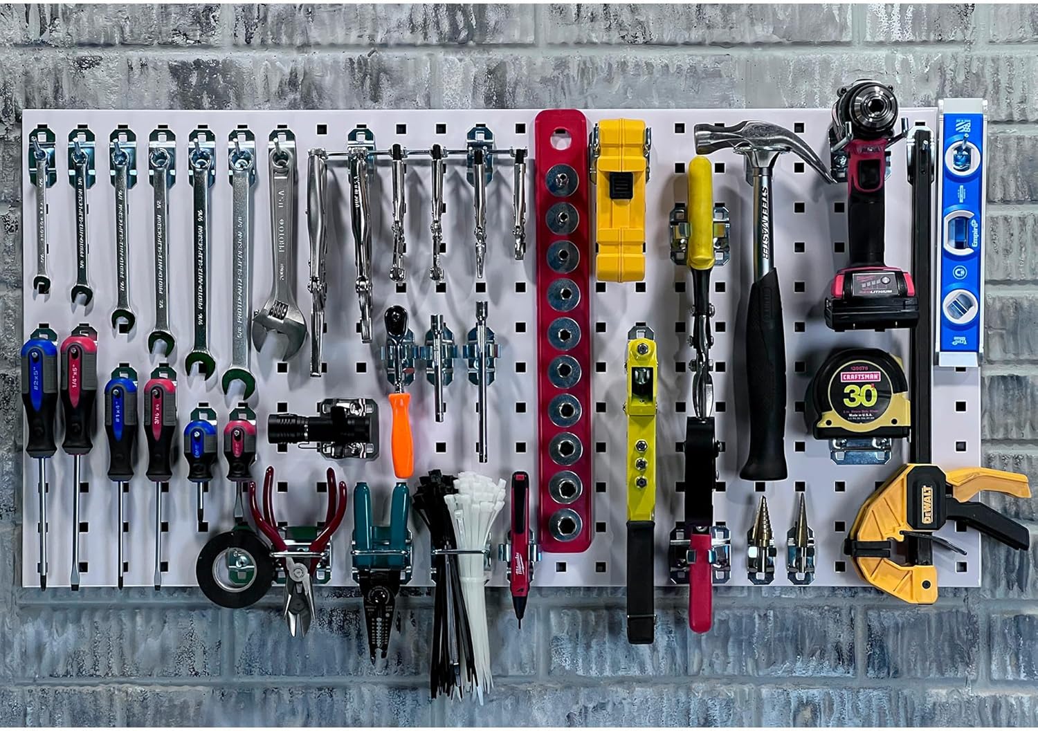 This Triton LocBoard Kit features a heavy-duty, scratch-resistant, epoxy-coated steel pegboard with square holes. This board is tough enough to hold power tools and large or odd shaped tools and other items with demanding storage needs. This unit is ideal for use in a clean room, on a factory production floor or in a maintenance area, home or garage. Includes hooks that lock securely on the board and can be easily repositioned. This board can be mounted vertically or horizontally. All necessary hardware is included.
