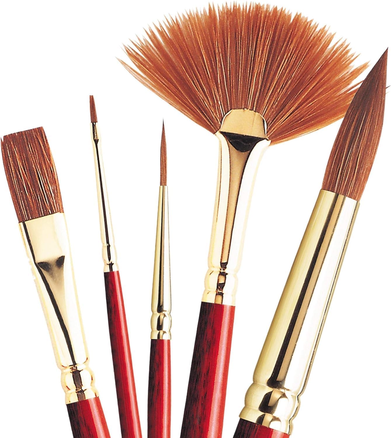 Winsor & Newton scepter gold II brushes are the perfect mix of Sable and synthetic giving the performance of a Sable at the price of synthetic. Artists generally recognize that pure Sable brushes are the best, but costly, so consideration of price may compel many to use a synthetic brush instead. However, while today's synthetic brushes perform better than ever, pure Sable still has the edge. This is why Winsor & Newton offers scepter gold II, a brush that's made from a blend of pure Sable and synthetic fibers, giving you a performance that is close to Sable at a price that is close to synthetic. The blend of hair in scepter gold II also gives you added benefits. Sable hair has excellent spring while the high quality synthetic filaments ensure that the brushes are soft enough to work the color but also have a strong snap so they return back to their original shape with ease. The high proportion of Sable in scepter gold II gives the brushes considerably more ability to make larger washes in one stroke than normal synthetic brushes and the hairs are tapered to a fine point, giving the brush control for detailed work. Scepter gold II brushes are ideal for working with watercolor and fluid oil color but are also suitable for use with acrylic, water mixable oil and alkyd Fast drying oil color. Each scepter gold II brush has a copper-colored handle and a seamless, gold-colored ferrule.
